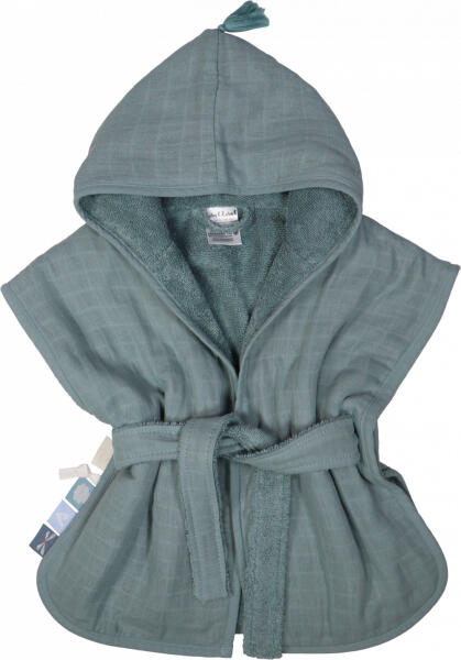 Ez a puha, kék fürdőköpeny a legkisebbek kedvence lesz. A belső frottír anyag kiváló nedvszívósága mellett gyengéd a kicsik bőréhez, így igazán kellemes viselet. A köntös öv nélkül is hordható, így poncsóként is használható. A kapucniján cuki kis pompommal díszítve.
